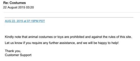 All Image August 22, 2015 CBRules Leave a comment Please note that Animal – full costume / ears / tails / masks – are banned on the site. Share this: Click to share on X (Opens in new window) X Click to share on Facebook (Opens in new window) Facebook