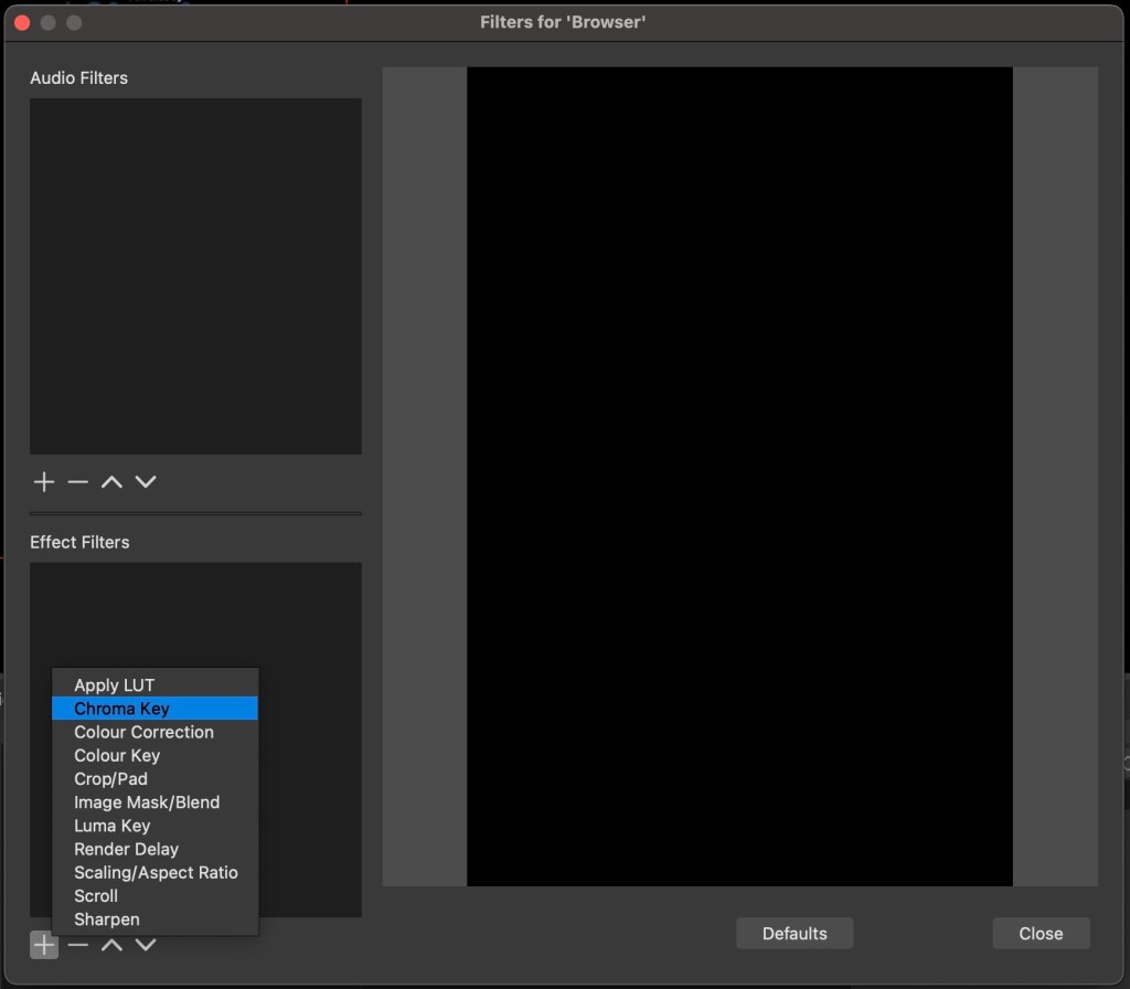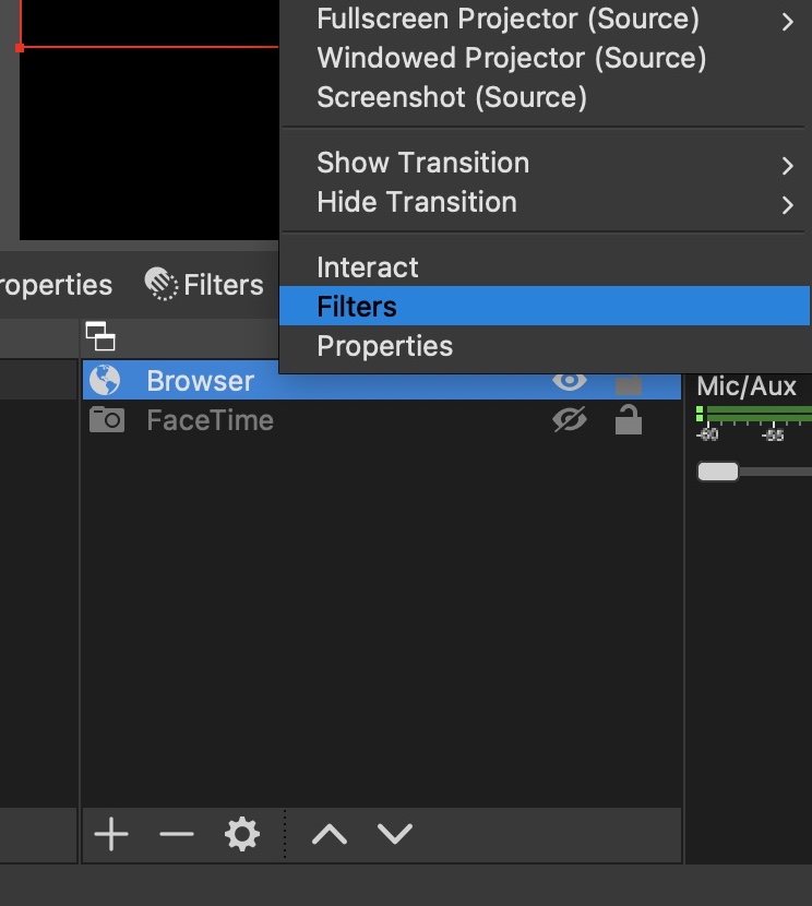 After you are happy where the black box is, Right Click on Browser in the sources section and click FILTERS.