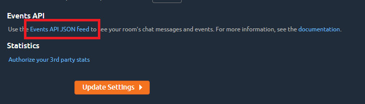 Now visit Chaturbate & open your Profile – then click on Settings & Privacy. Scroll down to the bottom and look for ‘Events API JSON feed‘.