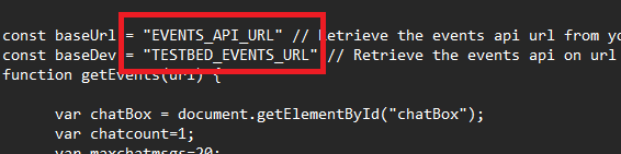 Go back to the cb=chat.js that you have opened in a text editor and paste the URL that you just copied into the “EVENTS_API_URL“