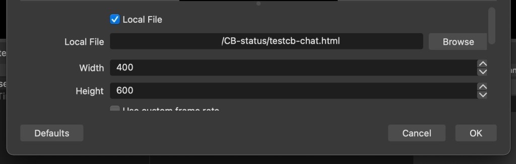 You can now close the window, OBS is now setup for live chat feed.